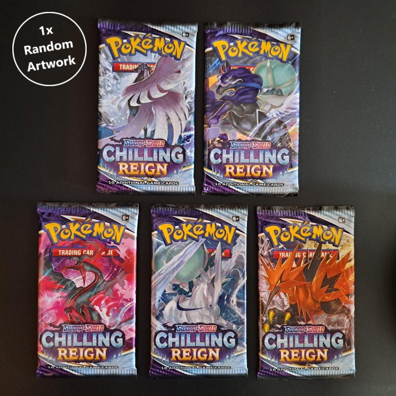 Seize the advantage with Pokémon of the frozen lands, with the powerful Ice Rider Calyrex VMAX and Shadow Rider Calyrex VMAX—plus the Galarian forms of Articuno, Zapdos, and Moltres! Phantom hauntings, howling blizzards, and wild battles—expand the realms of your Pokémon strategy with new powers and new possibilities. Press on despite ghostly opposition, and claim total victory in the land of spectral snow with the Pokémon TCG: Sword & Shield—Chilling Reign expansion!