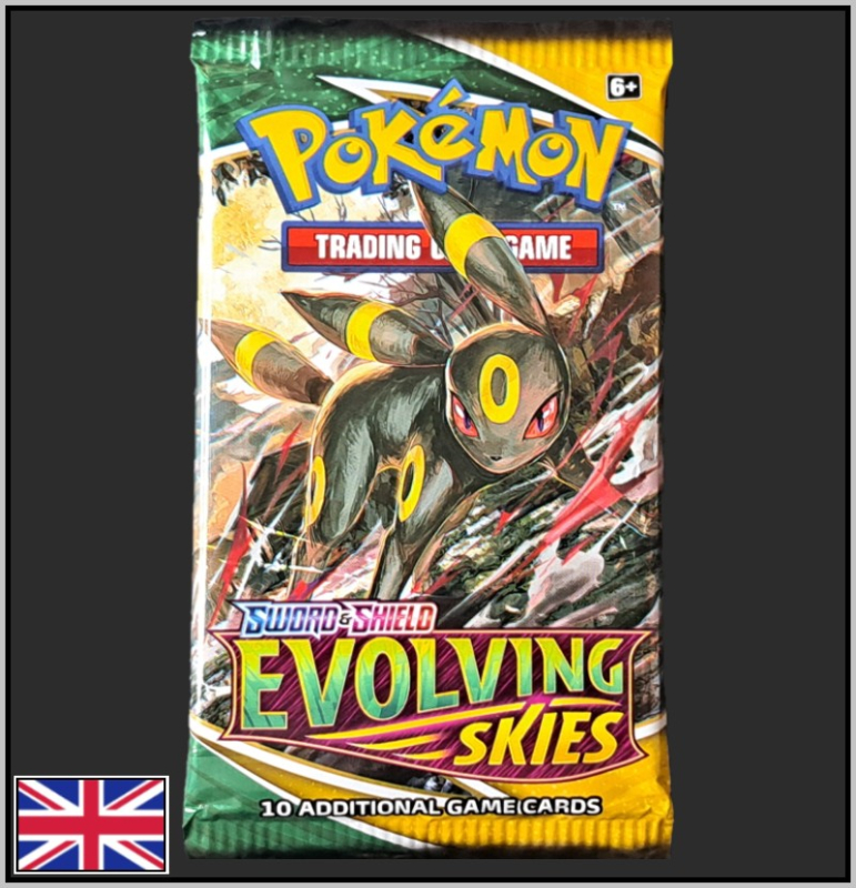 Feel the power of the shifting winds, and brace for an epic storm as mighty Dragon-type Pokémon make their triumphant return! Rayquaza VMAX leads the surge from on high, and Duraludon VMAX towers above the land in its Gigantamax form, joined by Dragonite V, Noivern V, and more. As the clouds part, Eevee's Evolutions appear in a full rainbow of Pokémon V and Pokémon VMAX to signal a bright new day in Pokémon TCG: Sword & Shield—Evolving Skies!